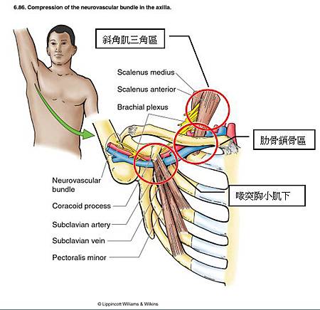 而經過這些區域的神經或是血管受到壓迫便會產生TOS
